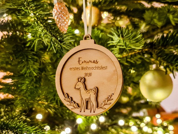 Wooden Christmas Tree Decoration With Name Babys First Etsy Norway