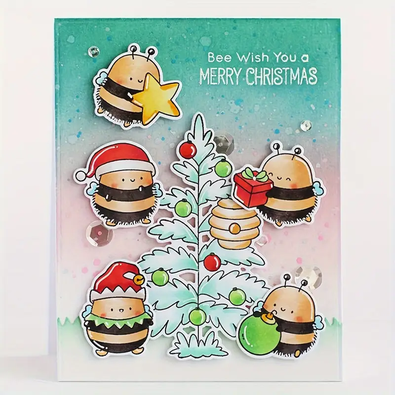 1pc, 2023 2024 Little Bee, Weihnachtsbaum Kartenherstellung