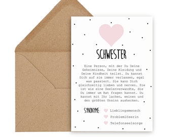 Postcard SISTER Definition Incl. Envelope Sister Gift Etsy